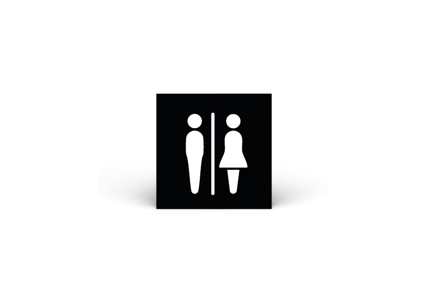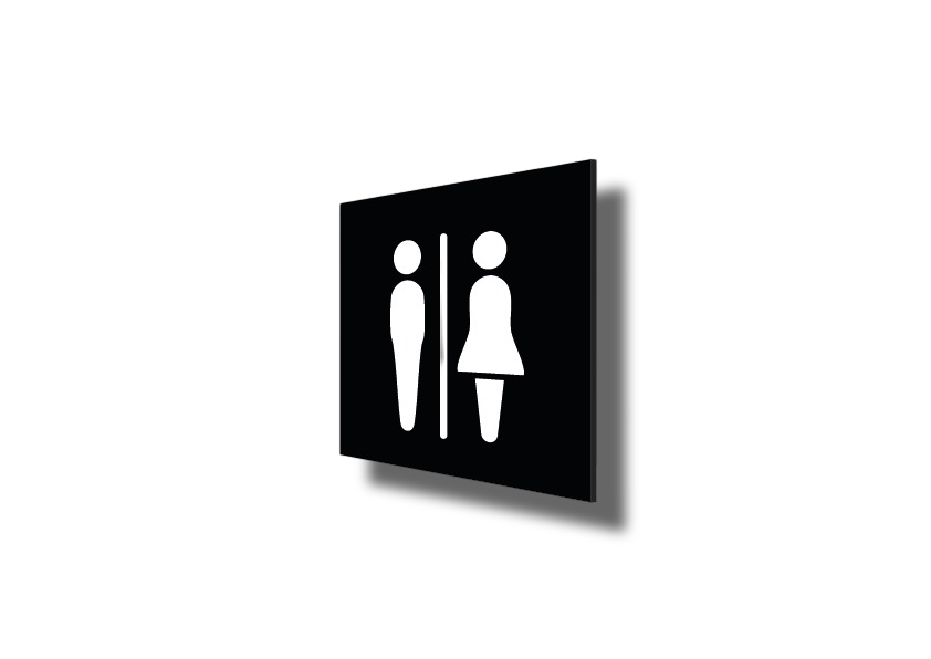 Pictograma decorativo fabricado en metacrilato negro mate de 3 mm de espesor, rotulado con vinilo de corte blanco de alta calidad. Una solución estética y funcional para señalizar aseos en oficinas, comercios, restaurantes o cualquier espacio que busque una imagen cuidada. Su diseño minimalista y contemporáneo lo convierte en un elemento discreto pero elegante, perfectamente integrado en ambientes modernos y profesionales.